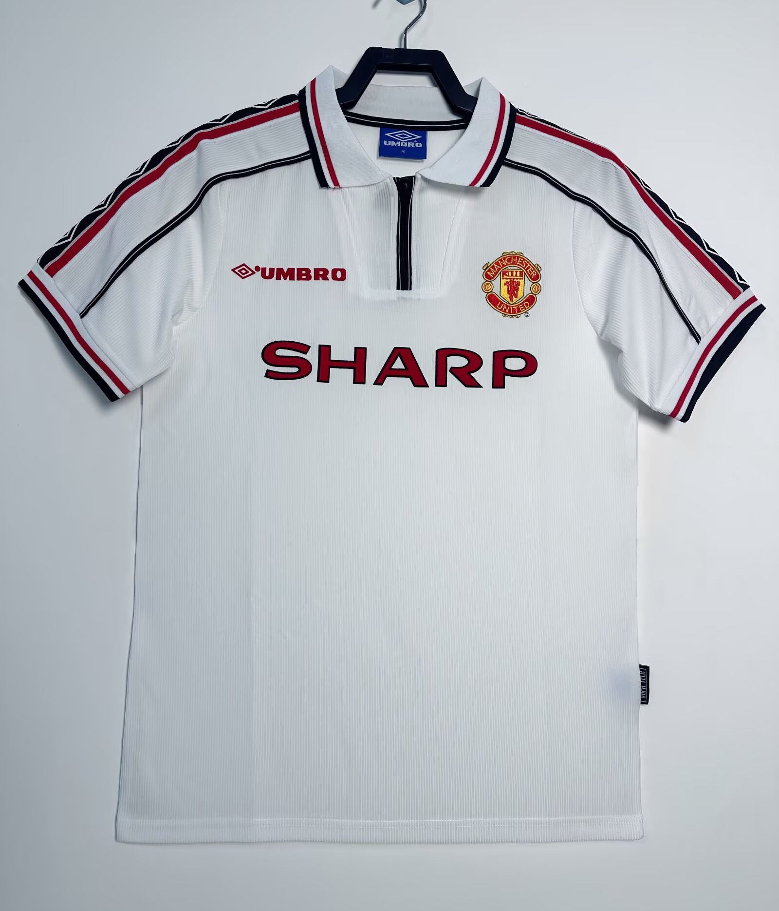 Step into the style of Old Trafford with the Manchester United 1998 White Away Jersey.
